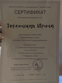 - Закінчила курс Krystal-Sense "Метафоричні асоціативні карти в консультуванні", 30 годин.